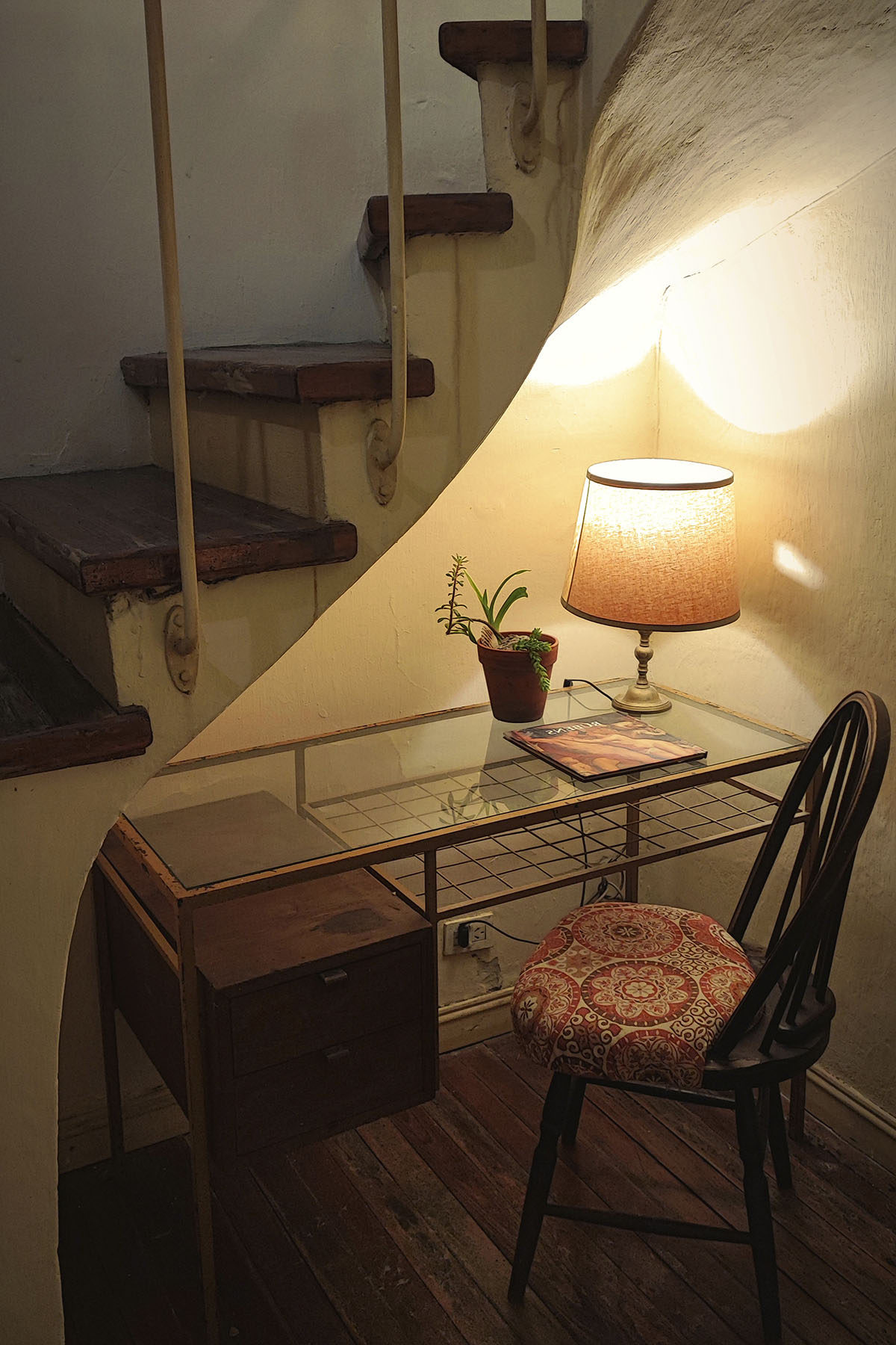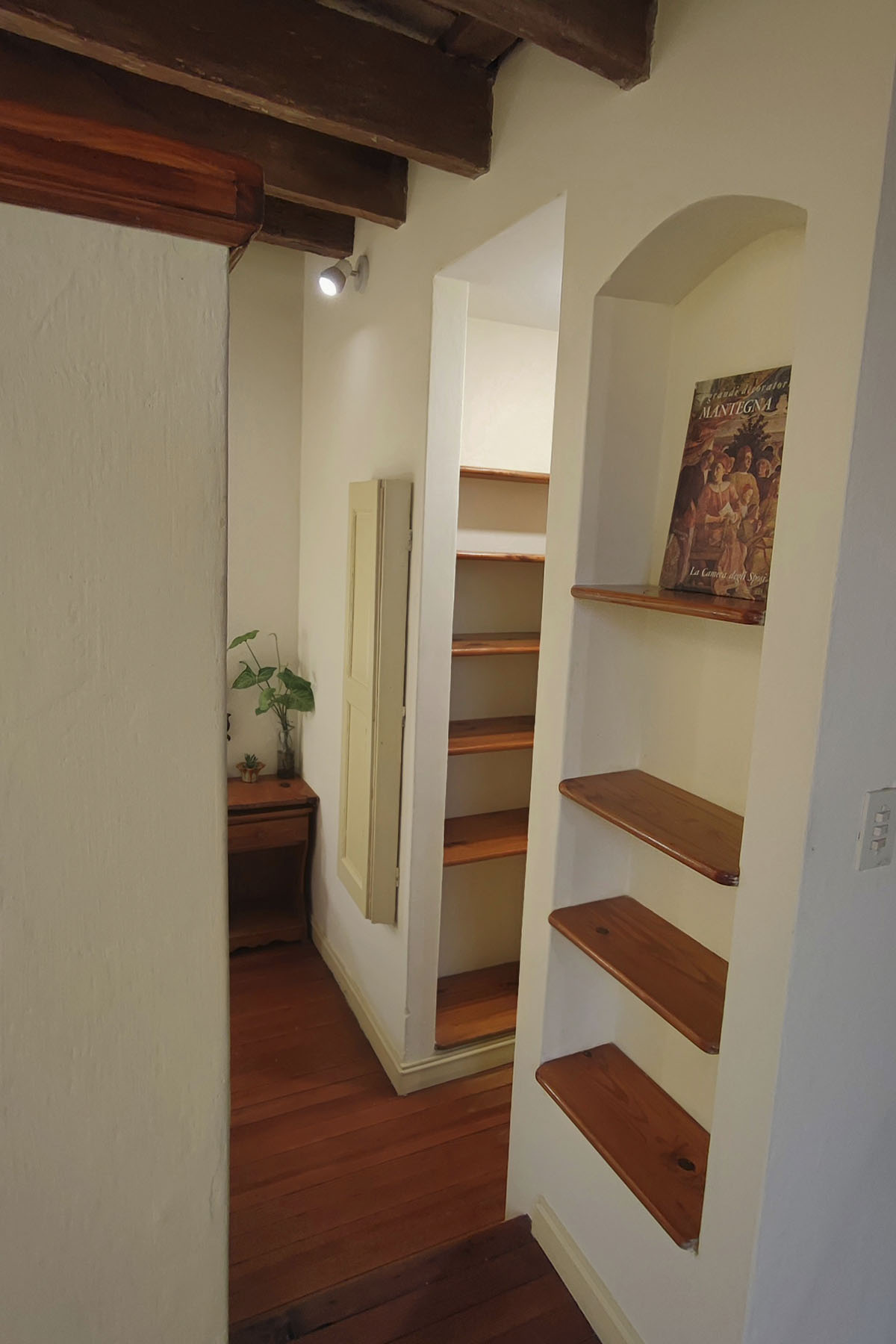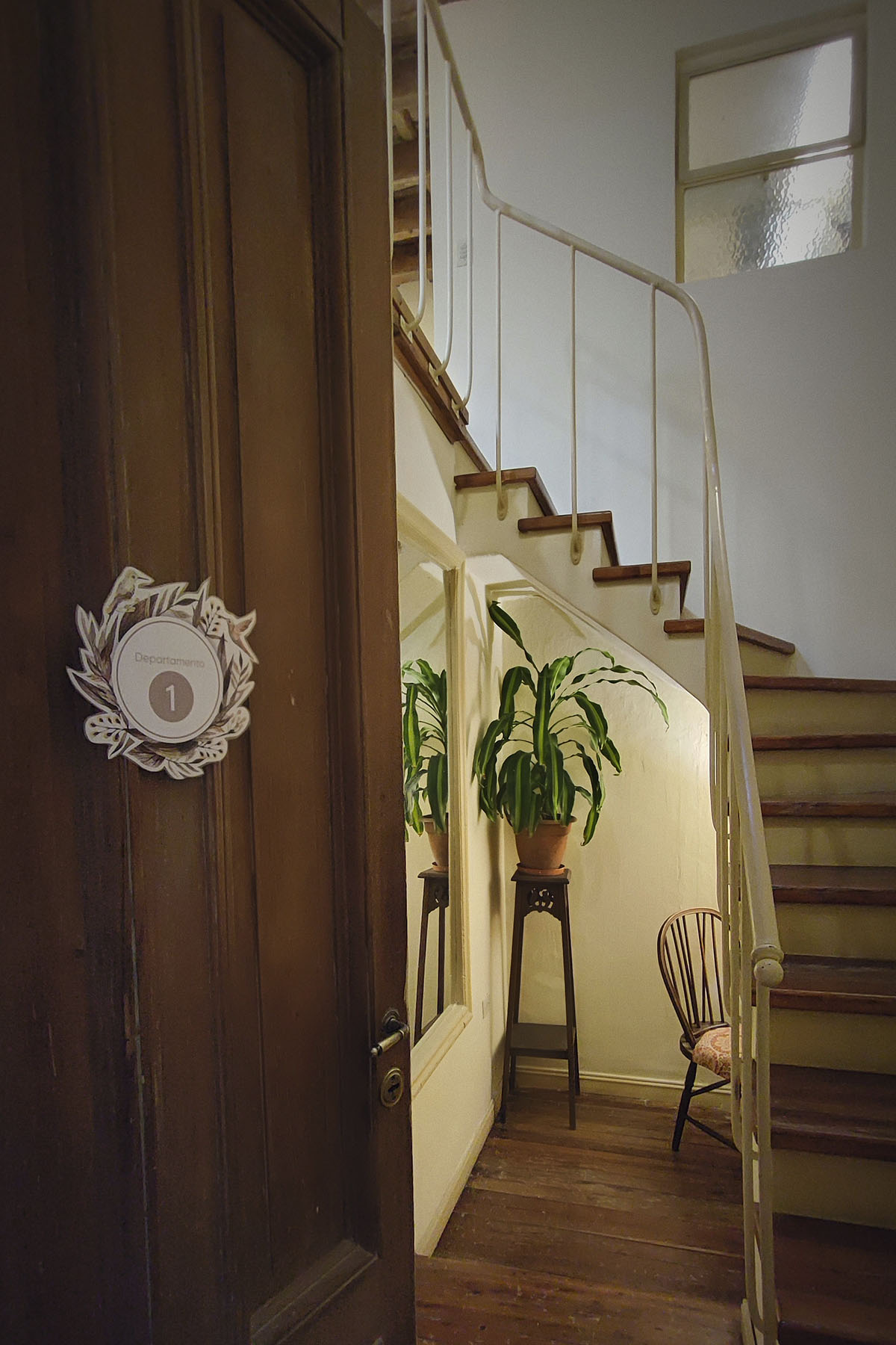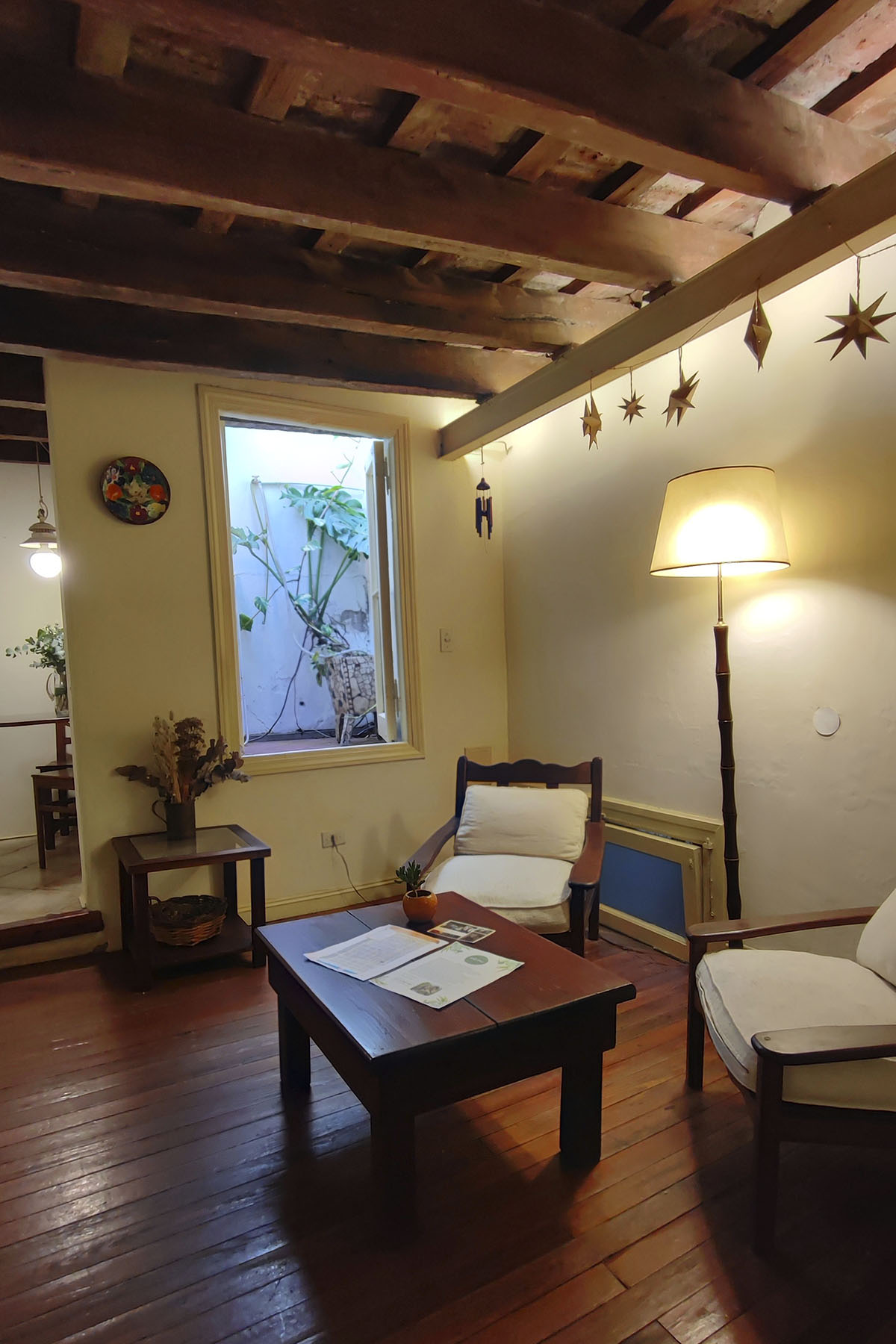 Departamento en dos niveles, cálido y silencioso, ubicado en el centro de la manzana. Pisos de madera, iluminación indirecta y un antiguo techo de ladrillos con tirantes originales crean una atmósfera acogedora. En pocos metros, el espacio está cuidadosamente resuelto para un uso cómodo y funcional.