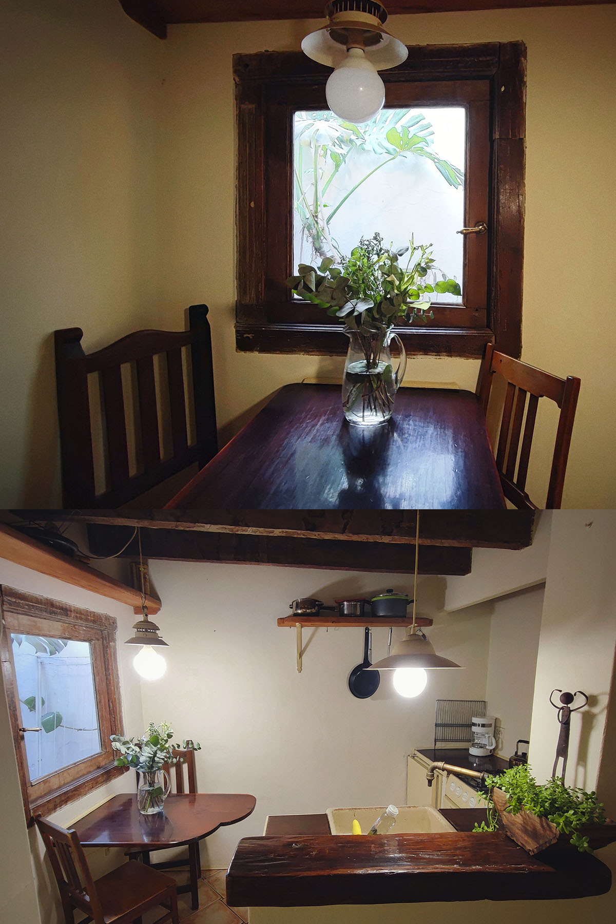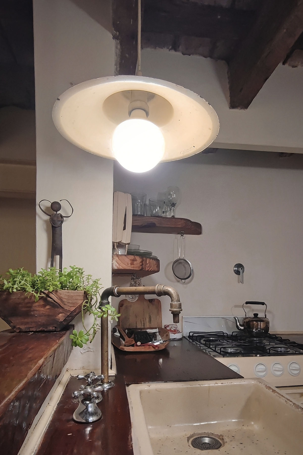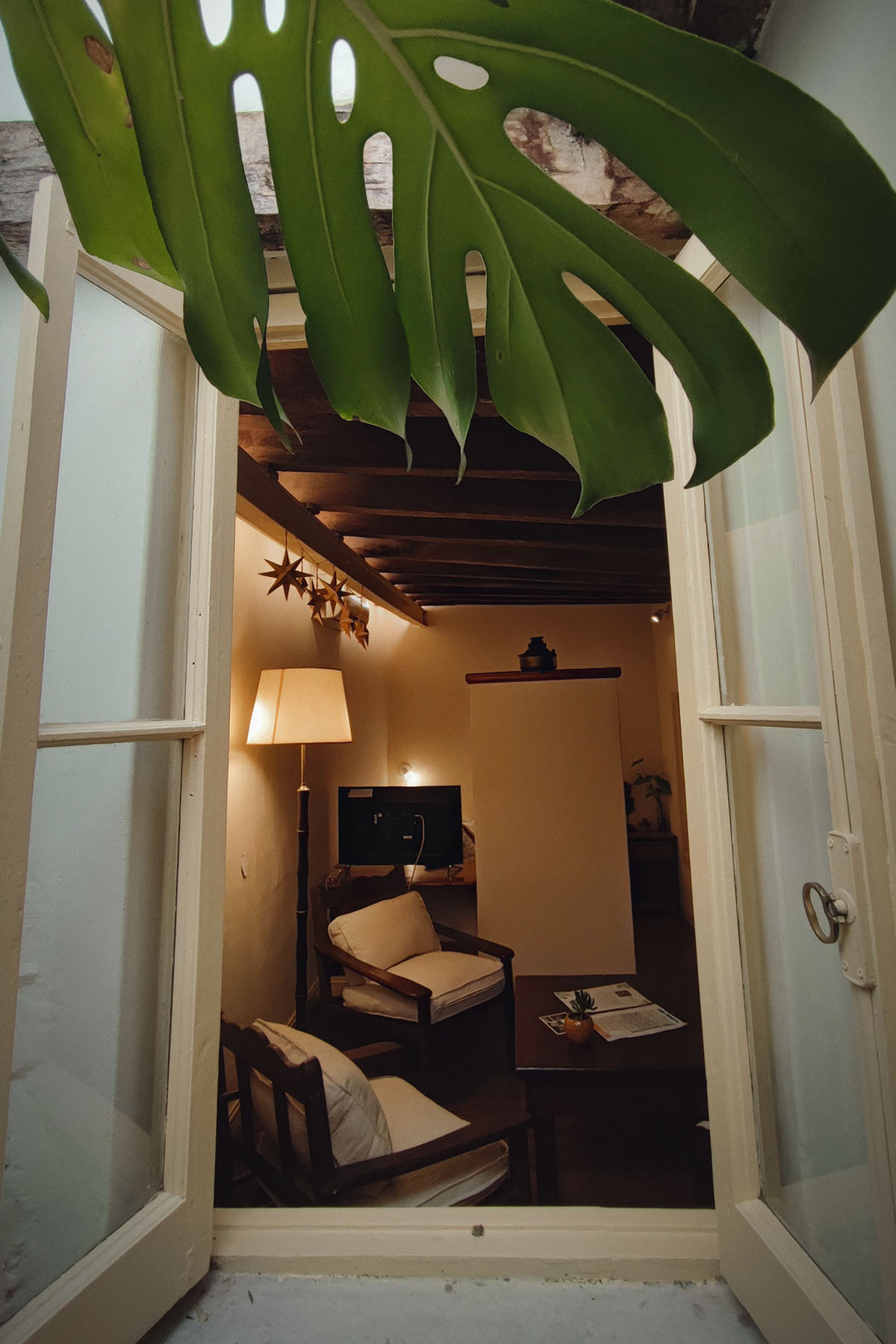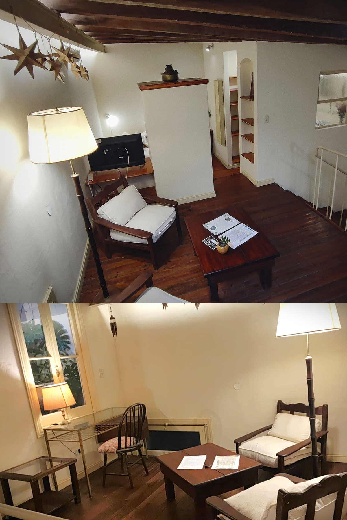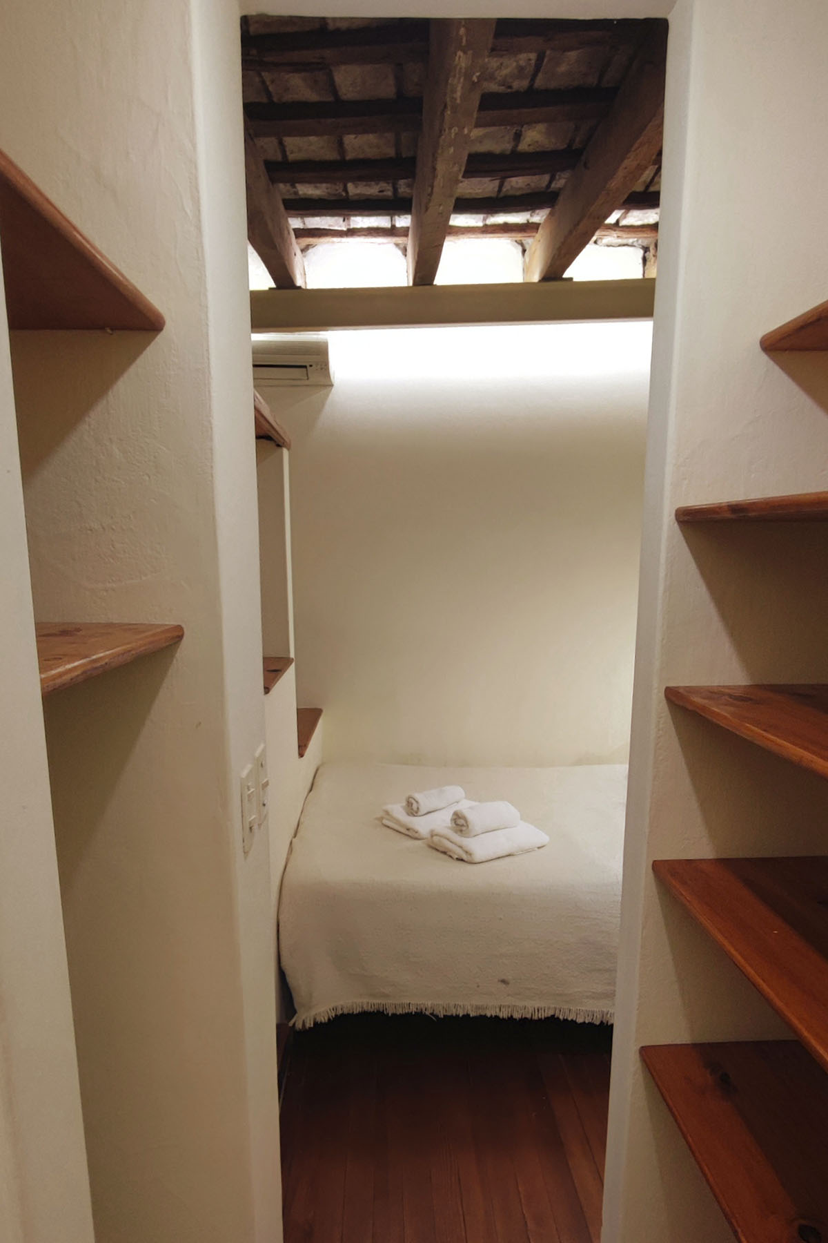 Departamento en dos niveles, cálido y silencioso, ubicado en el centro de la manzana. Pisos de madera, iluminación indirecta y un antiguo techo de ladrillos con tirantes originales crean una atmósfera acogedora. En pocos metros, el espacio está cuidadosamente resuelto para un uso cómodo y funcional.