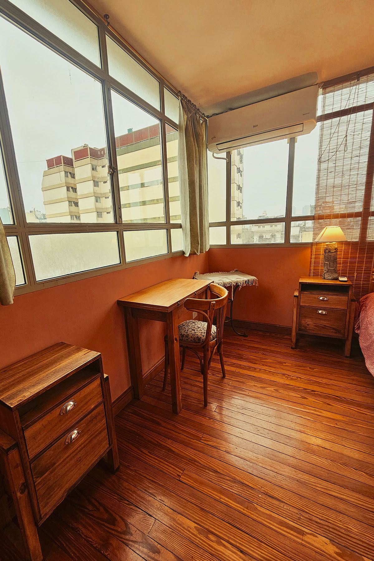 - Piso de madera reciclada de pino tea.