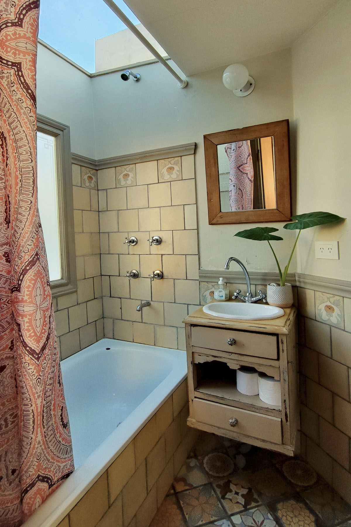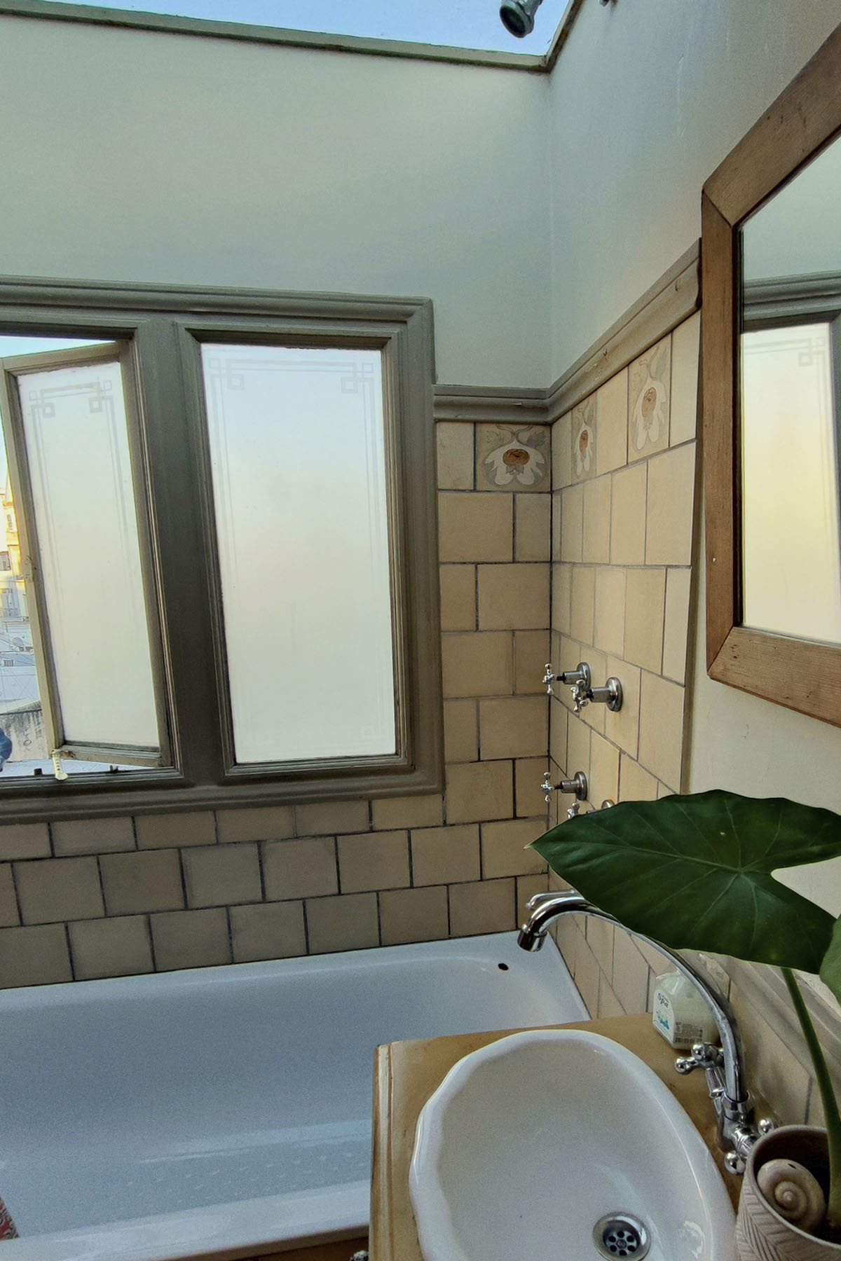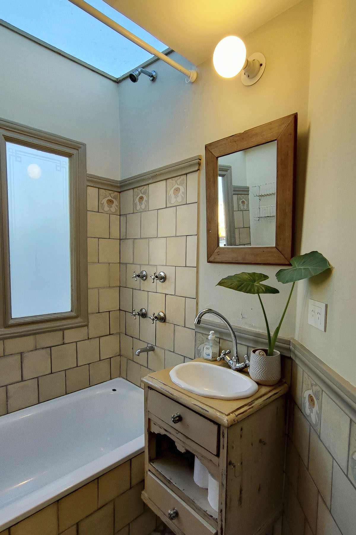 - Baño con bañera y techo de vidrio, agua caliente ilimitado.