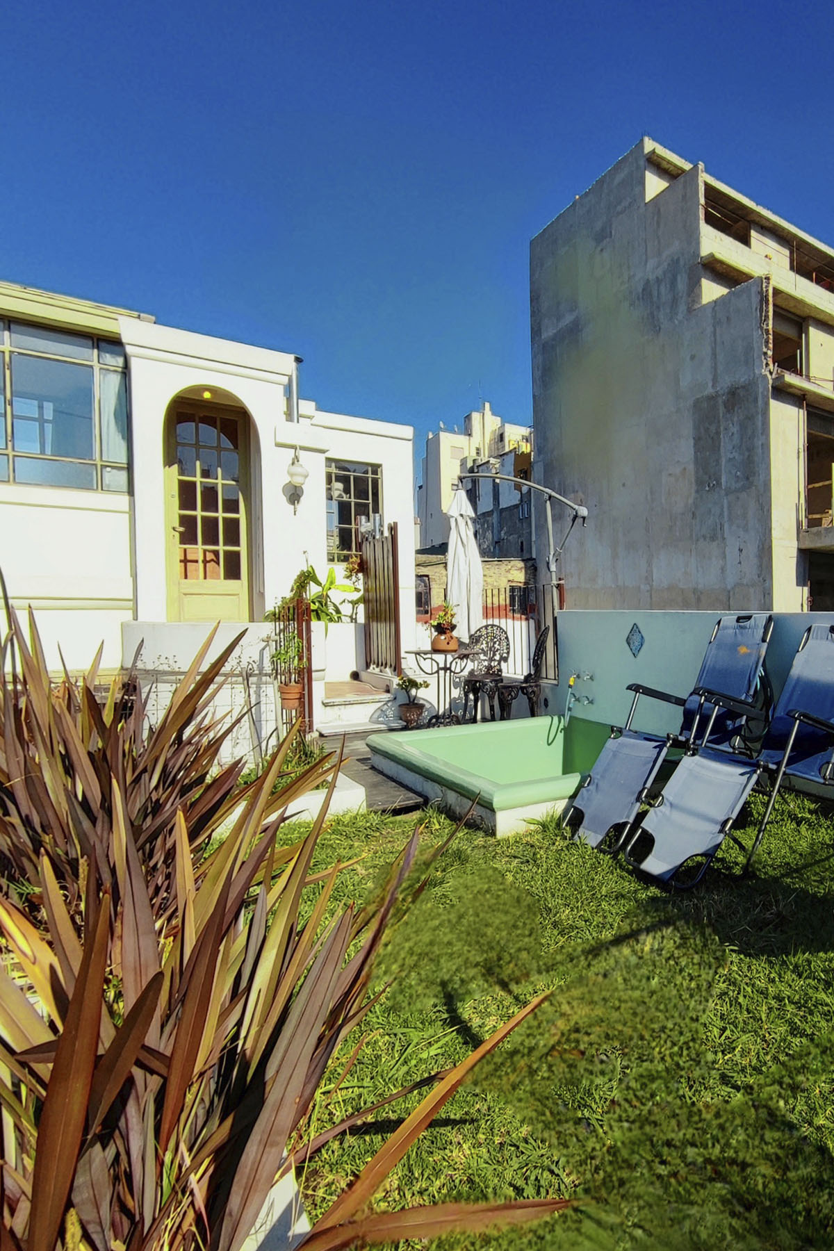Departamento único y luminoso, con jardín elevado de pasto natural y pileta. Privacidad, verde y diseño en un solo espacio.