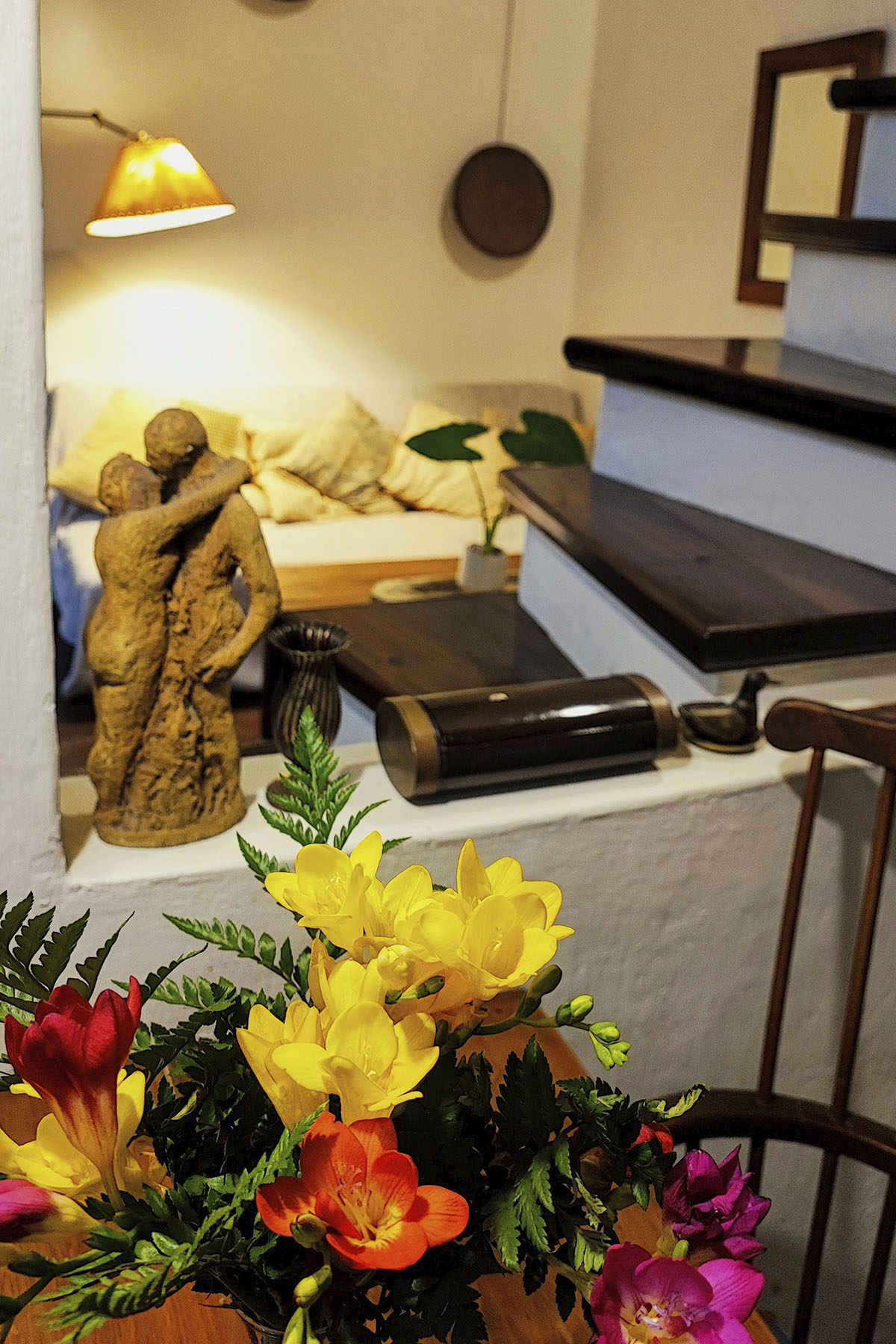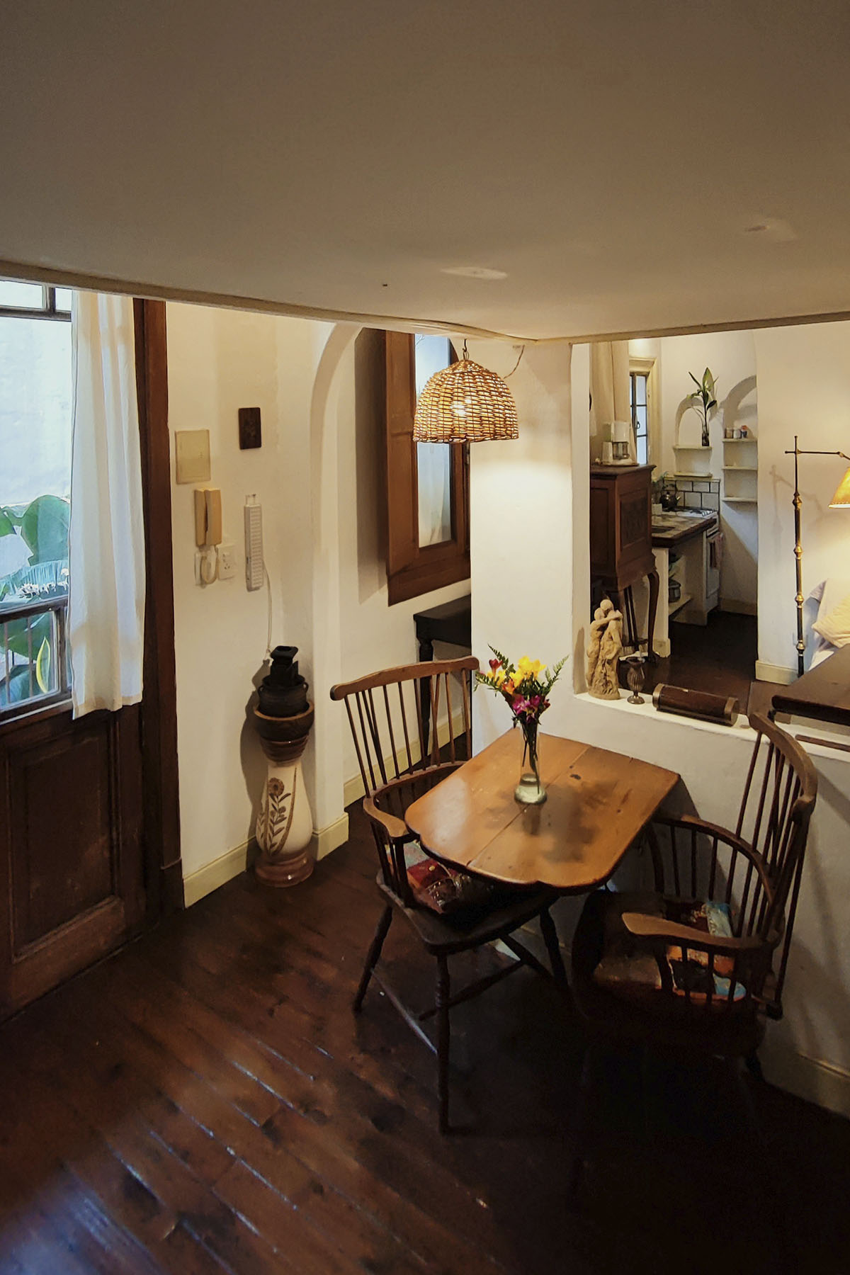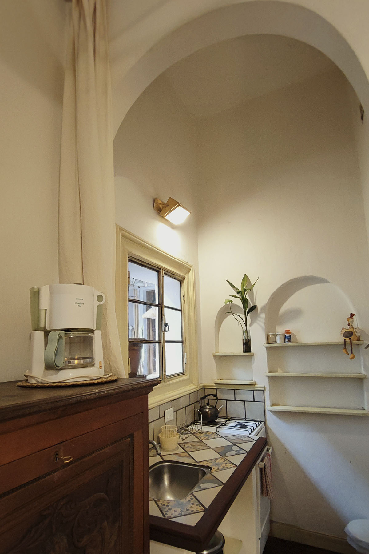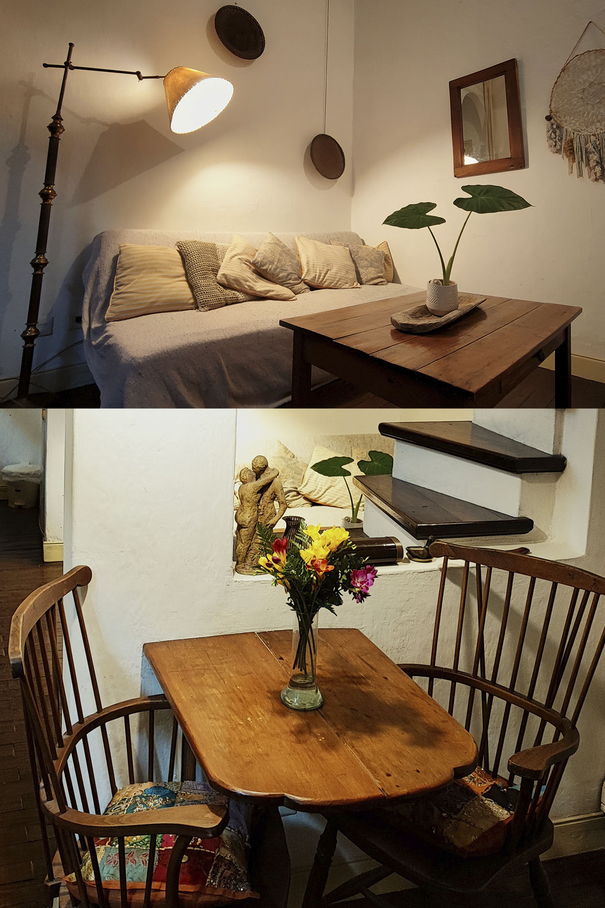 Departamento de diseño singular, con arcadas y espacios en desnivel. Escalera de madera hacia la cama doble y estar de techo alto que aporta amplitud y carácter.